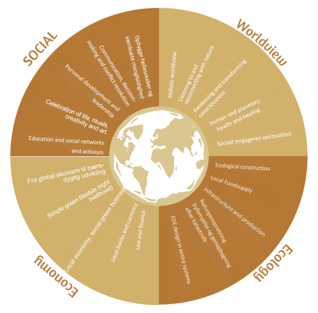 LØS is planning a GAIA certified EDE course of 4 weeks duration in collaboration with 4 different eco-communities, in 2024. Each week in an eco-community targets one of the 4 dimensions of the sustainability wheel.