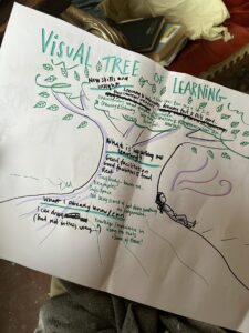 Jeg har lært at bruge mine evner indenfor tegning til at styrke min facilitering af grupper. At facilitere gruppeprocesser er ikke noget der kommer let til mig. Jeg bliver hurtig genert og selvbevidst, men gennem dette kursus har jeg forstået hvordan jeg kan bruge et af de stærke værktøjer i min værktøjskasse til at styrke et af mine svagere og give mig større selvtillid til at facilitere!